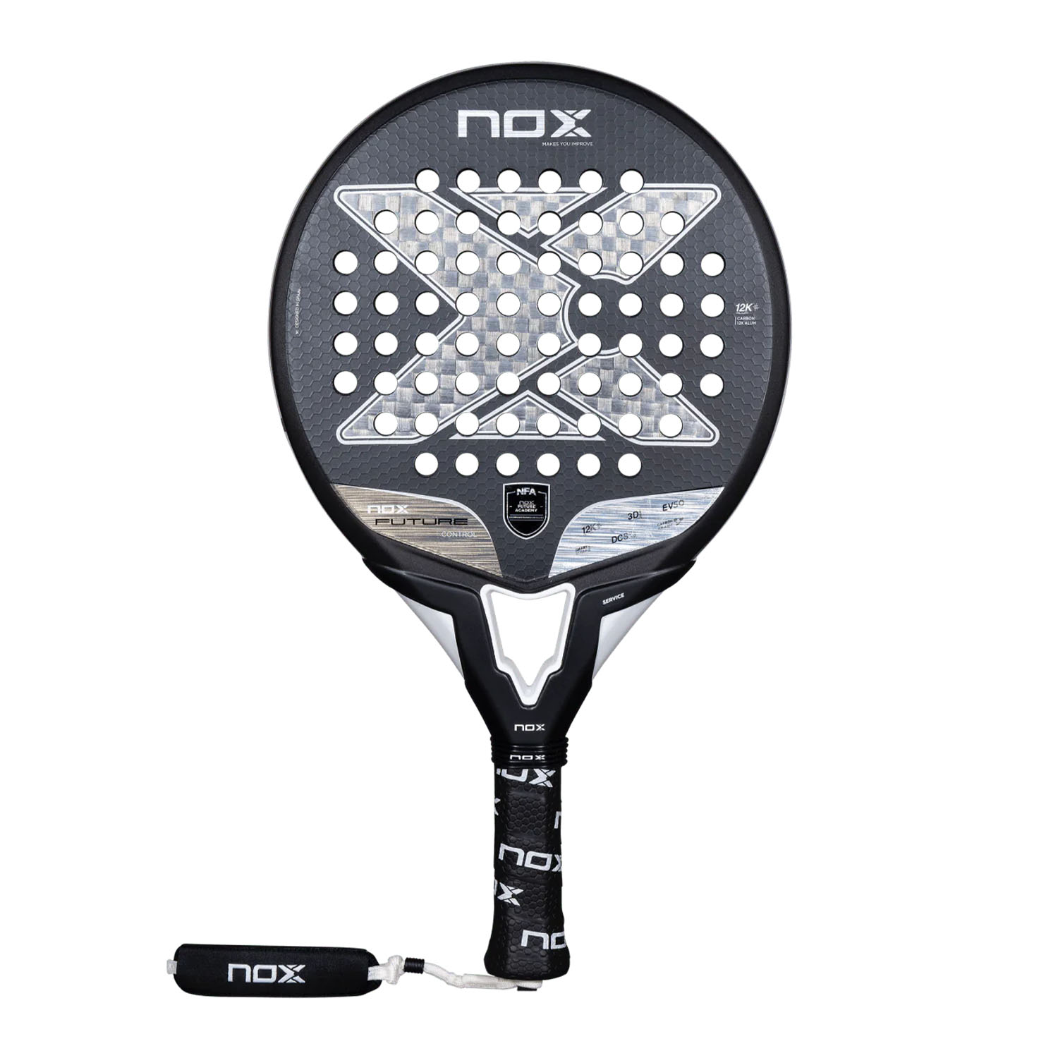 Падел — это спорт точности, интеллекта и контроля. Future Control 12K Alum разработан для тех игроков, которые строят каждый розыгрыш с терпением и стратегией, контролируя тайминг и выполняя удары с хирургической точностью. Это ракетка выбора талантов Академии Nox Future (NFA), где тренируются будущие звезды профессионального тура. Теперь она доступна и для любого игрока, стремящегося к максимальному контролю на корте.